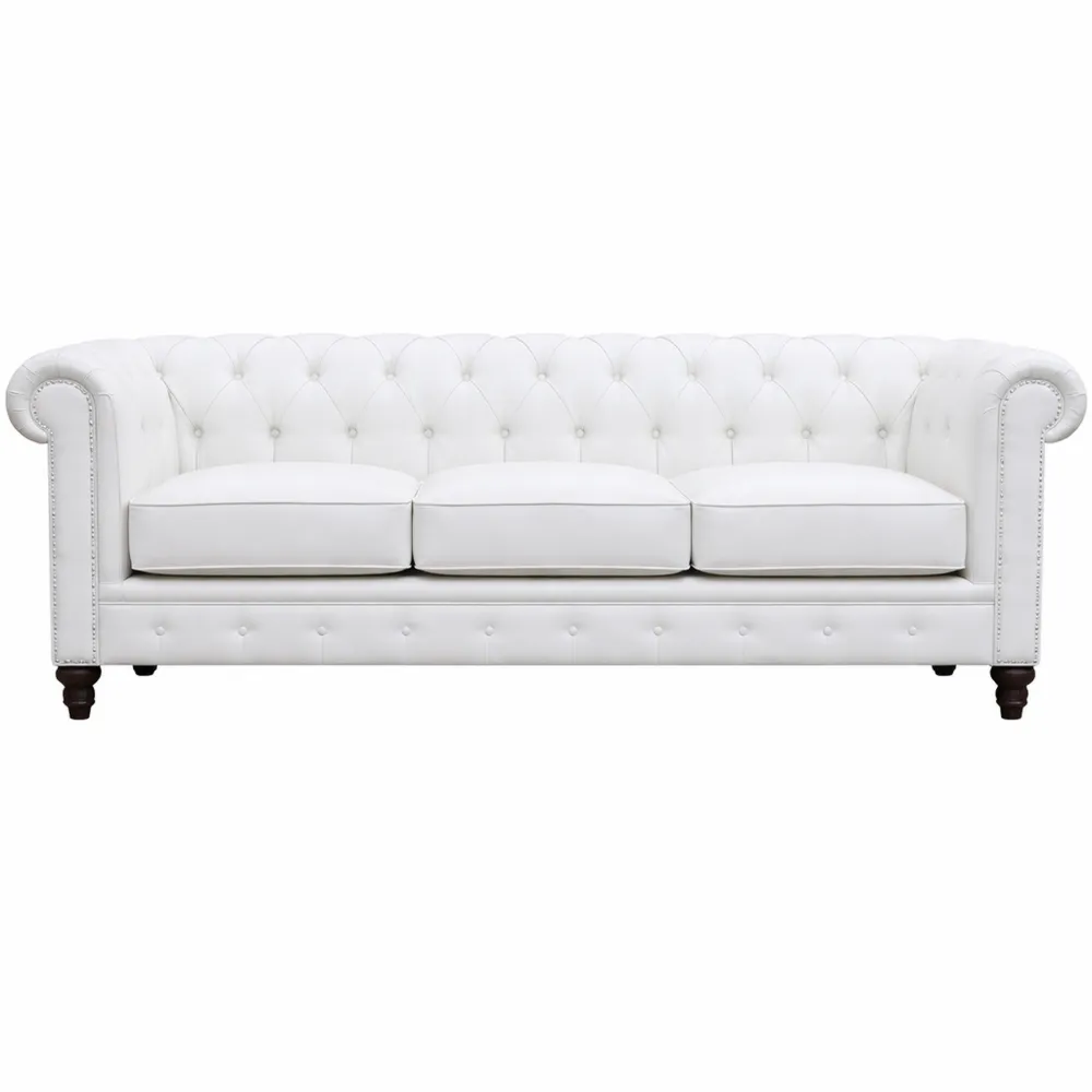 Canapé 3 Places en Tissu Blanc, Dimension 208x82x70cm