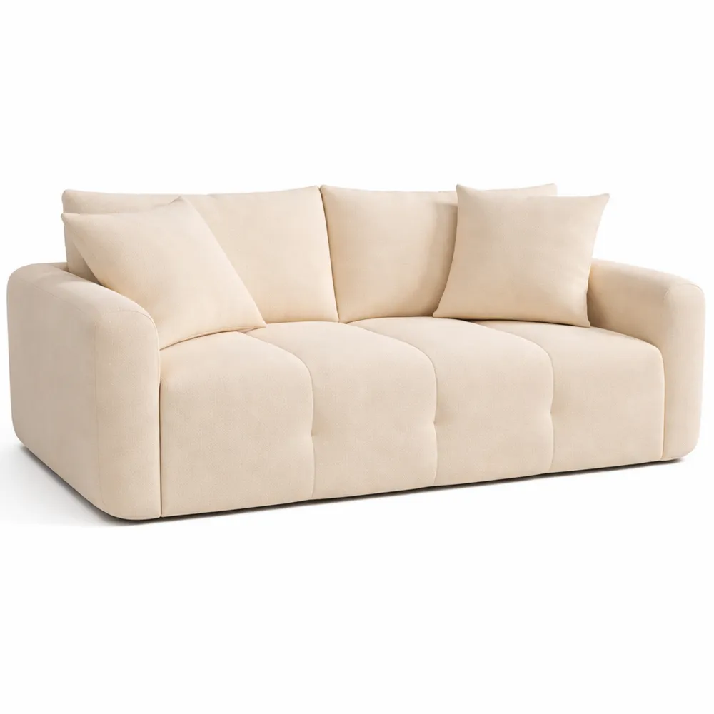 Canapé droit en tissu avec design arrondi. Dimensions : 205 x 107 x 84 cm - Beige - 3 places