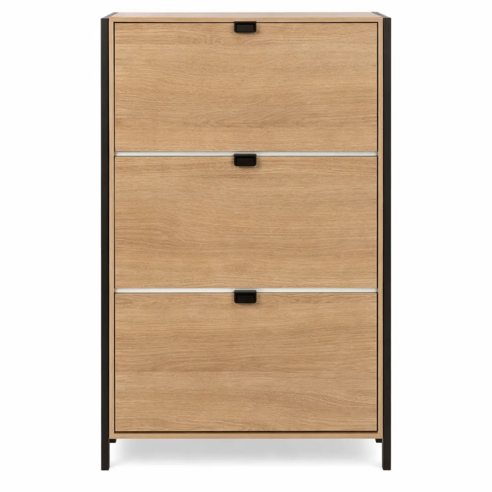 Rangement spacieux : Ce meuble range-chaussures dispose de 3 tiroirs capables d'accueillir jusqu'à 18 paires de chaussures. Il permet d'organiser vos chaussures de manière accessible. Design adaptable : Avec son effet chêne naturel, ce meuble s'intègre dans divers décors d'entrée, de chambre ou de dressing. Son style épuré s'adapte à différents types d'intérieurs. Optimisation de l'espace : Meuble compact conçu pour maximiser le rangement dans des espaces réduits, une solution pratique sans encombrer la pièce. Facilité d'utilisation : Les tiroirs disposent de poignées intégrées pour une manipulation aisée, protégeant les chaussures de la poussière tout en restant accessibles.